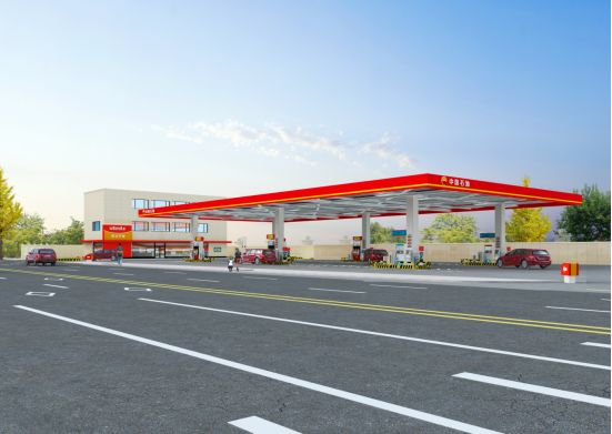 新建1座型鋼結構罩棚,投影面積1058.00m2,棚下設4 臺四槍加油機,預留有2座加油島。